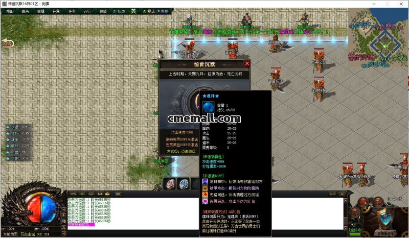 版本介绍:添加魂珠功能,初级魂珠需要2500个万古神石+3000万元宝可成功激活,即可晋升为定魂珠,可加攻击速度+50%,打怪爆率+100%,同时会激活相应的BUFF。