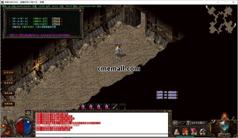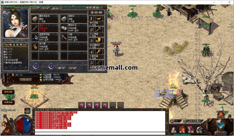 【版本说明】:本服新增智能挂机功能,本服独家智能挂机系统: 命令 @挂机,1、系统10秒后自动重新开启挂机模式,避免卡顿停止挂机,2、系统10分钟自动随机移动人物一次,避免周边无怪可打,3、系统60分钟自动特修全身装备一次,避免装备持久过低。